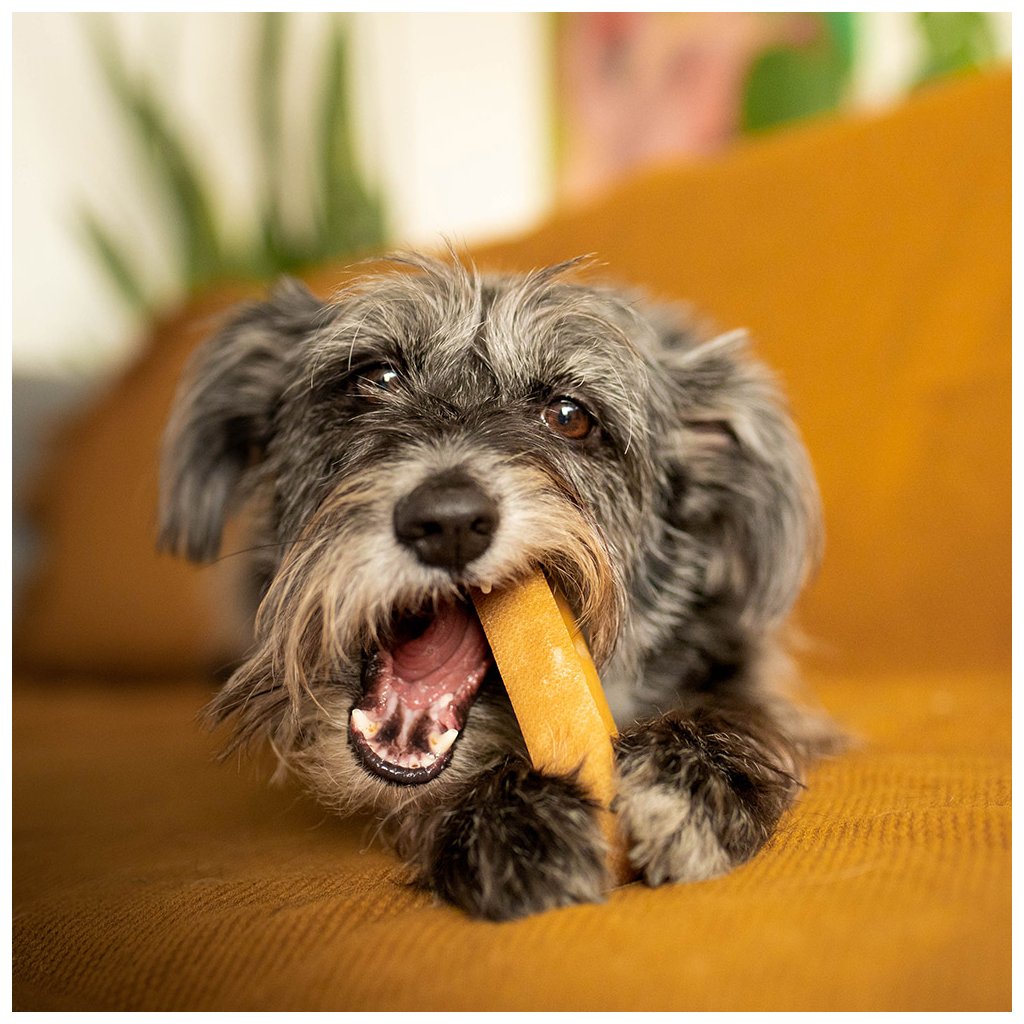 - Podpora zdraví zubů: Tvrdost pamlsku napomáhá čištění zubů během žvýkání, což snižuje množství povlaku a kamene.