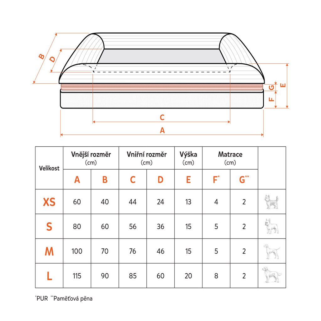 - Ortopedická podpora: dvojvrstvá matrace s paměťovou pěnou přirozeně kopíruje tělo psa a poskytuje mu stabilní oporu.